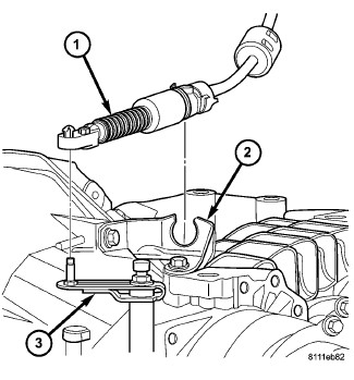 5. Install cable to transaxle shift lever (3).