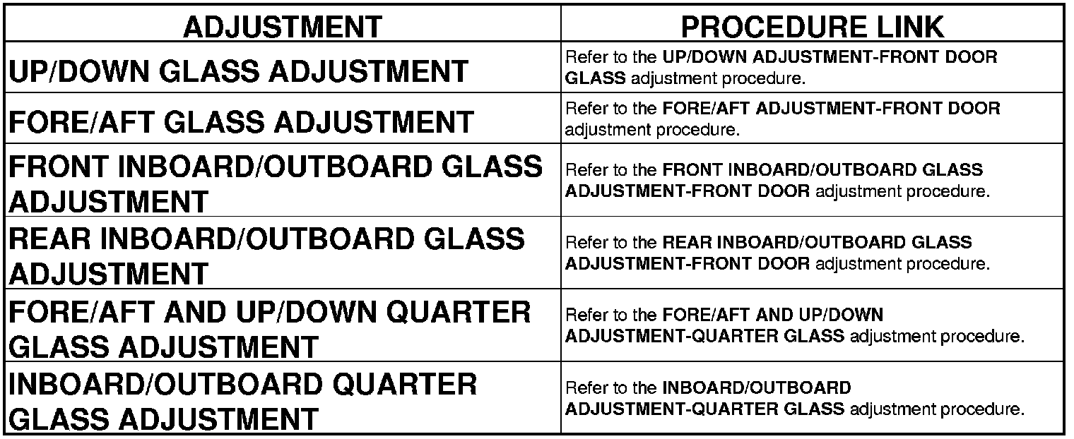 NOTE: Verify that the door is properly adjusted to the body prior to adjusting the door glass.