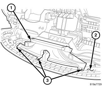2. Install the three screws (3) that secure the defroster duct to the instrument panel top cover. Tighten the screws to 2.2 Nm (20 in. lbs.).