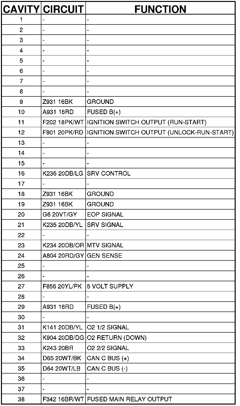 Powertrain Control Module C1 (Headlamp And Dash) 38 Way
