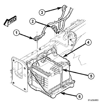 - Battery Tray (6) - The battery tray provides a secure mounting location in the vehicle for the battery and an anchor point for the battery holddown hardware.