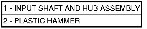 16. Tap on input hub (1) with soft faced hammer (2) and separate input hub from OD/Reverse piston and clutch retainer.