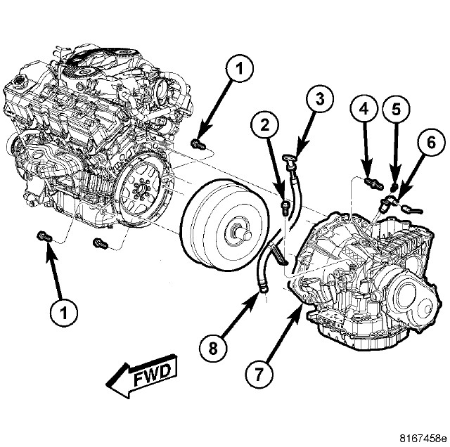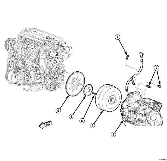 5. Install torque converter bolts and tighten to 88 Nm (65 ft. lbs.).