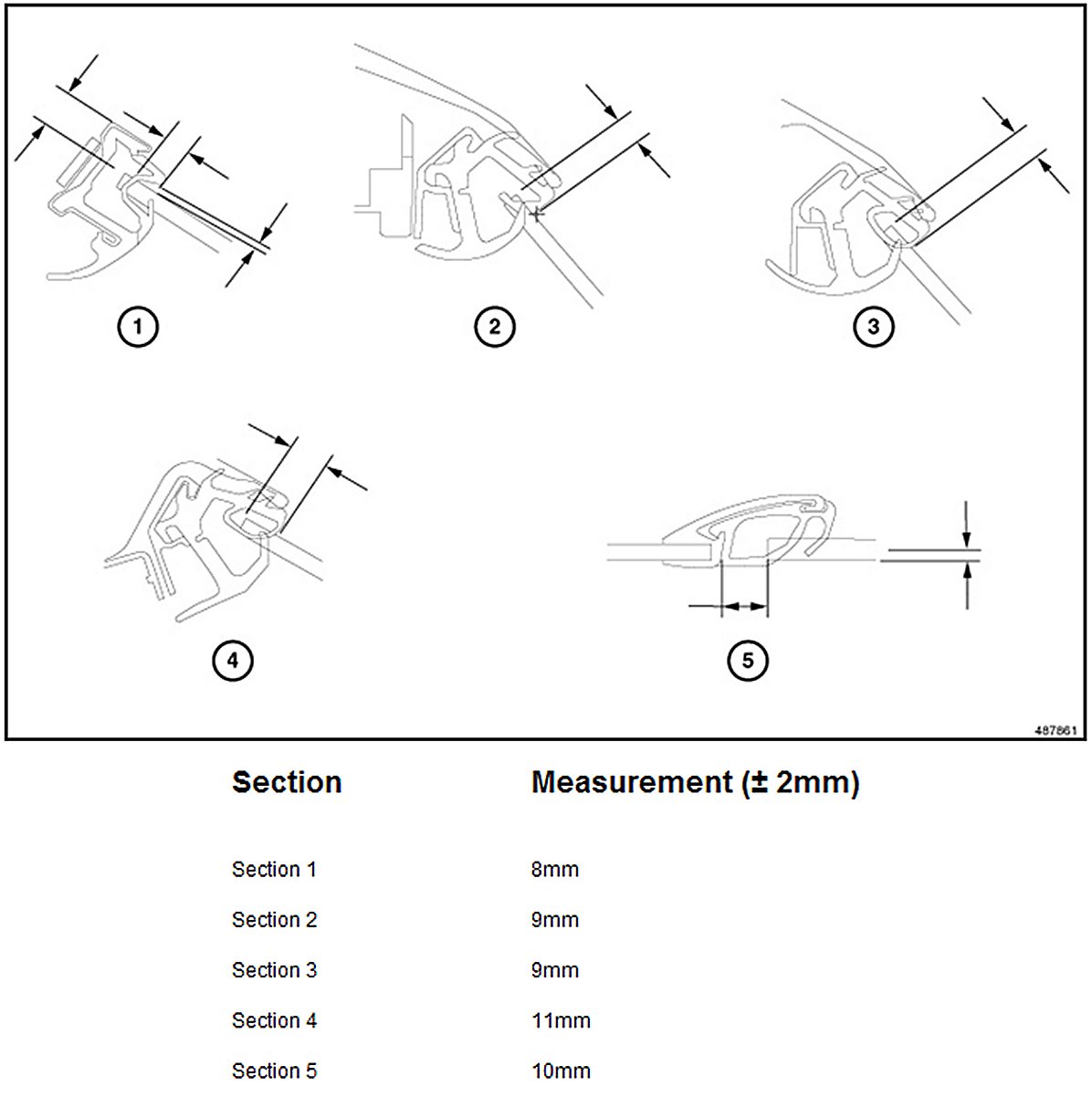 5. Verify the vertical gap between the quarter glass and front door glass measures 10±2mm.