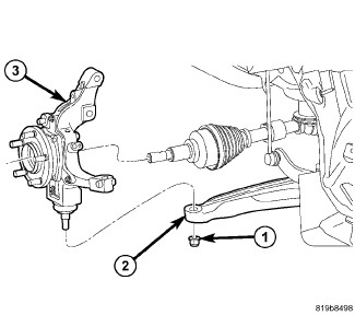 a. Place the lower control arm (3) into the front suspension crossmember.