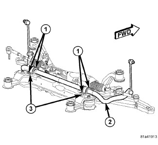 9. Remove the bungee cord or other supporting the steering gear (2).