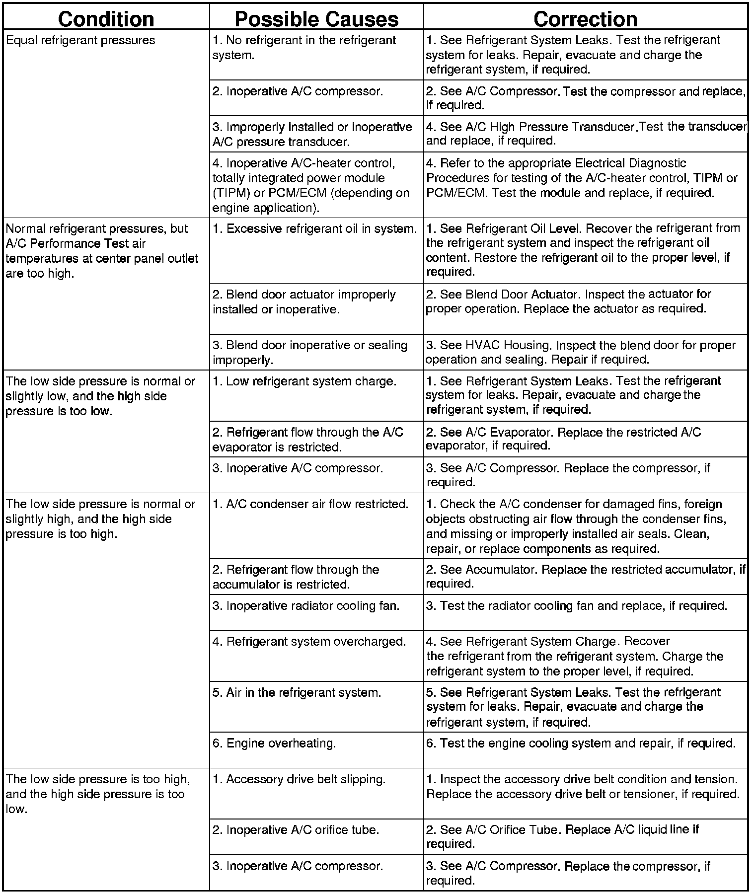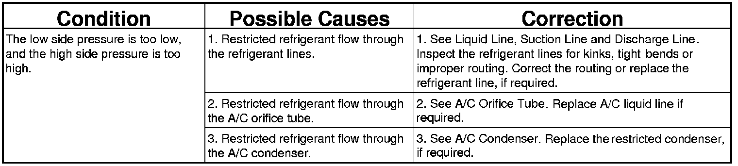 A/C PERFORMANCE TEMPERATURE AND PRESSURE