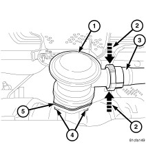 1. Install new gasket (5) and air injection check valve (1) to pipe.