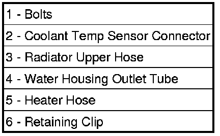 9. Install radiator upper hose (3) to water housing outlet tube (4).