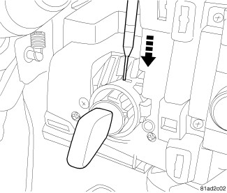 3. Use thin screw driver to depress locking pin for key cylinder.