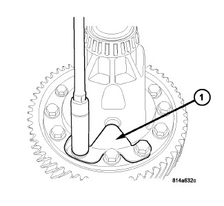 16. Install bearing retainer with a bead of Mopar(R) Silicone Rubber Adhesive Sealant and torque bolts (1) to 28 Nm (250 in. lbs.).