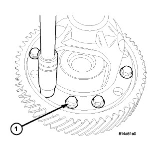 1. Position differential case to ring gear. Install ring gear-to-differential case bolts (1) and draw ring gear into position. Torque bolts to 95 Nm (70 ft. lbs.).