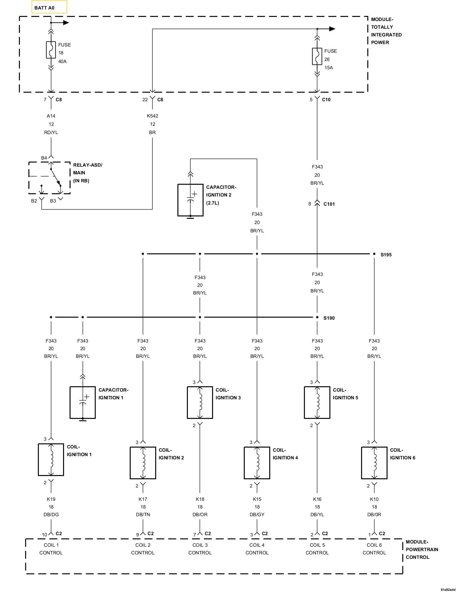5. Using a 12-volt test light connected to ground, check the Main/ASD Relay output circuit in the ignition coil harness connector.