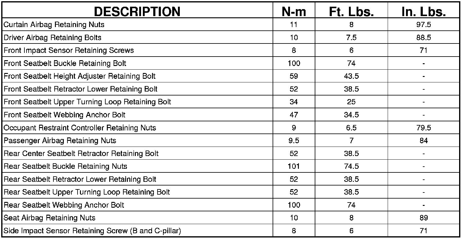TORQUE SPECIFICATIONS