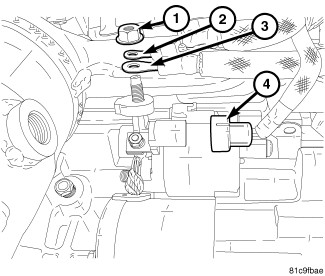 2. Position starter (4) into transmission housing (3), install ground wire (1) and starter mounting bolts (2). Tighten bolts to 54 Nm (40 ft. lbs.).