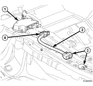 4. Disconnect the ORC jumper harness (2) electrical connector at the ORC (4) and then the body harness (3).