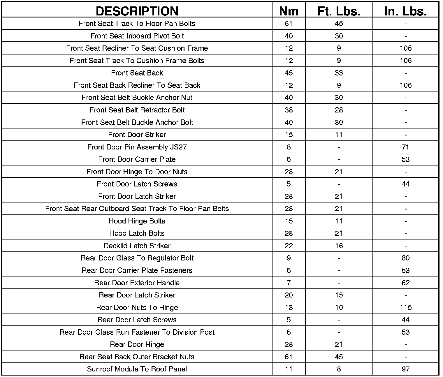FASTENER TORQUE