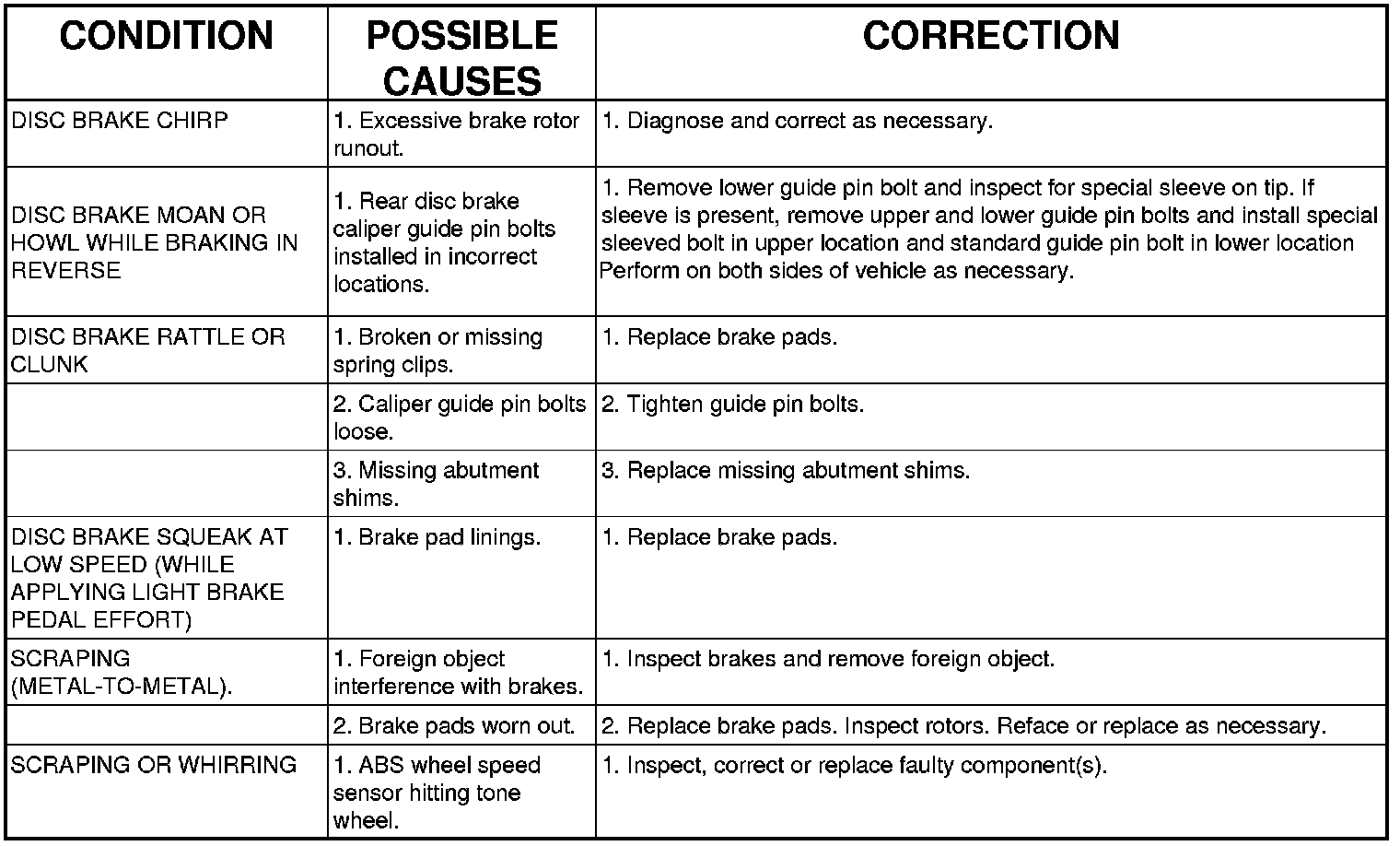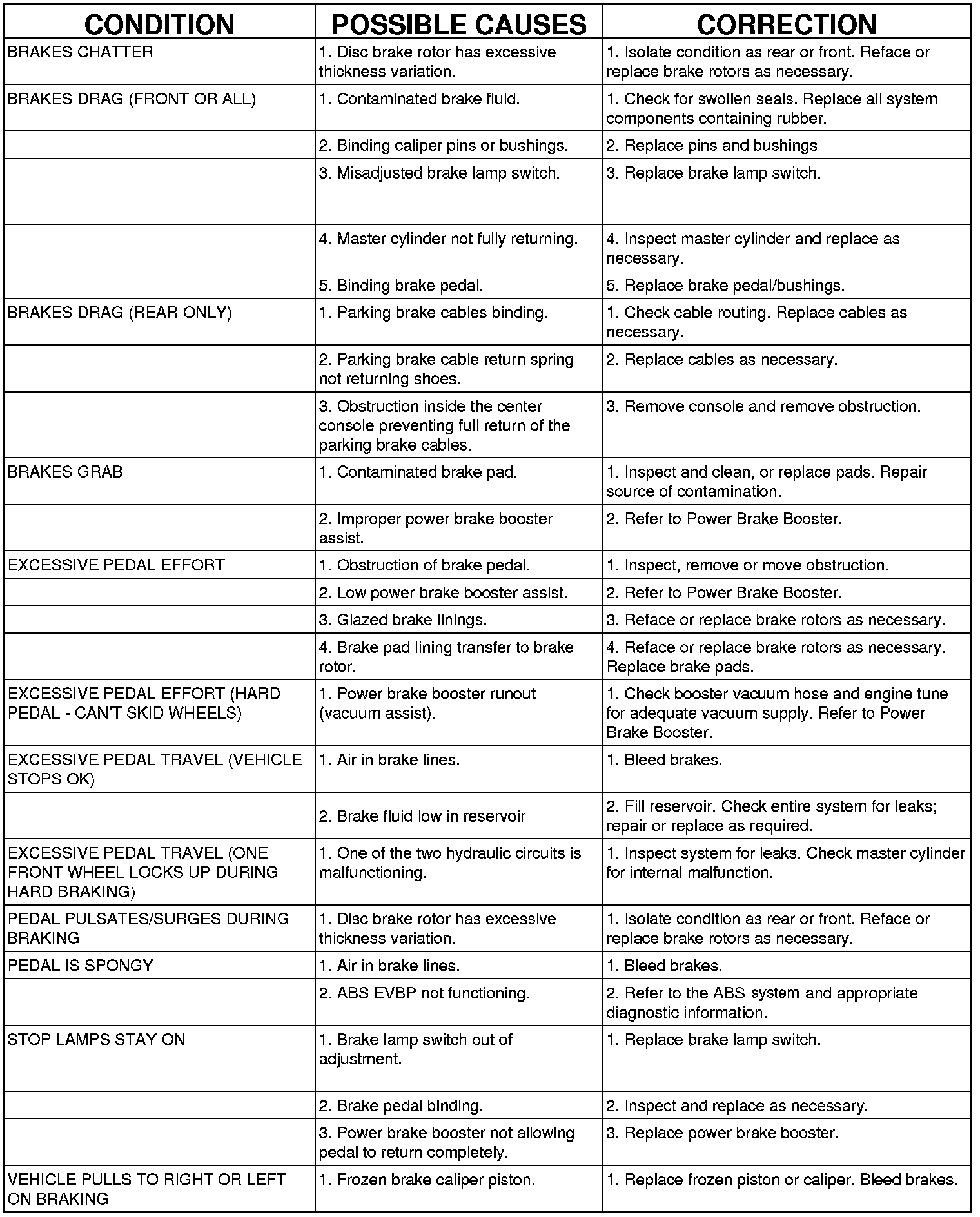 BASE BRAKE SYSTEM DIAGNOSIS CHARTS