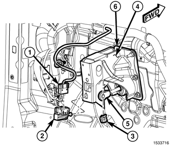 5. Rotate the brake lamp switch housing (2) counterclockwise about 30 degrees to align the tabs on the switch locking collar with the keyed hole in the brake pedal support bracket.
