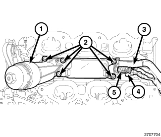 5. Remove the oil pressure sensor (2) from the oil filter housing (3).
