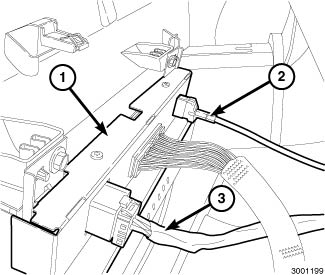 2. Connect the harness connectors (2 & 3) to the rear of the Integrated Center Stack (ICS) screen module (1).