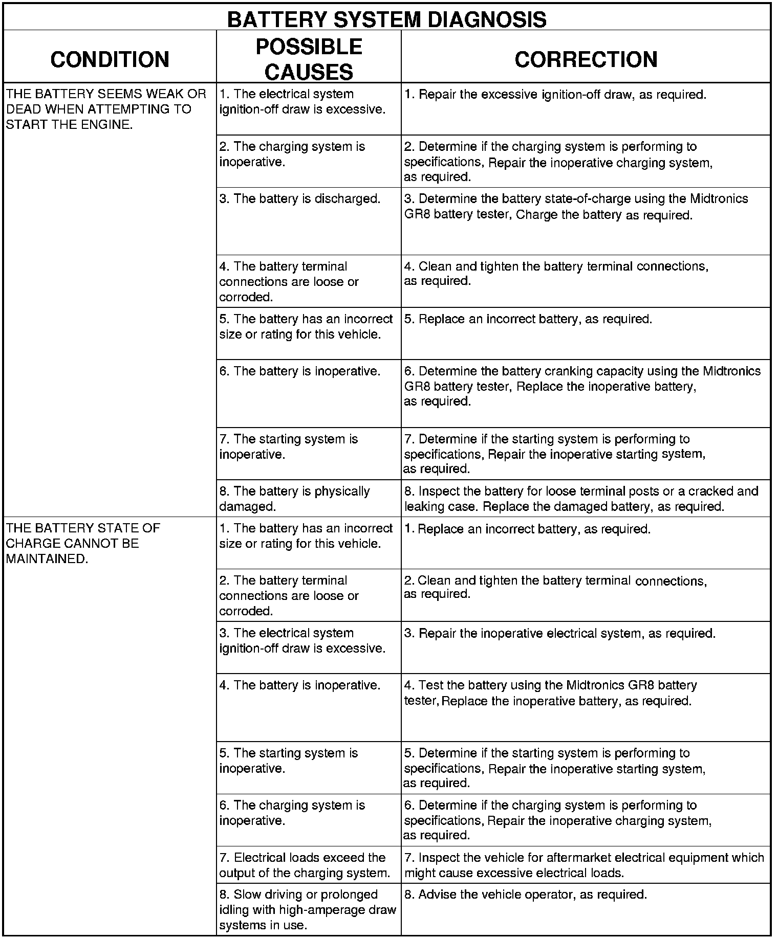 The Midtronics GR8 battery system tester is designed to help diagnose the cause of a defective battery. Procedures for directions on using the Midtronics GR8 battery tester.