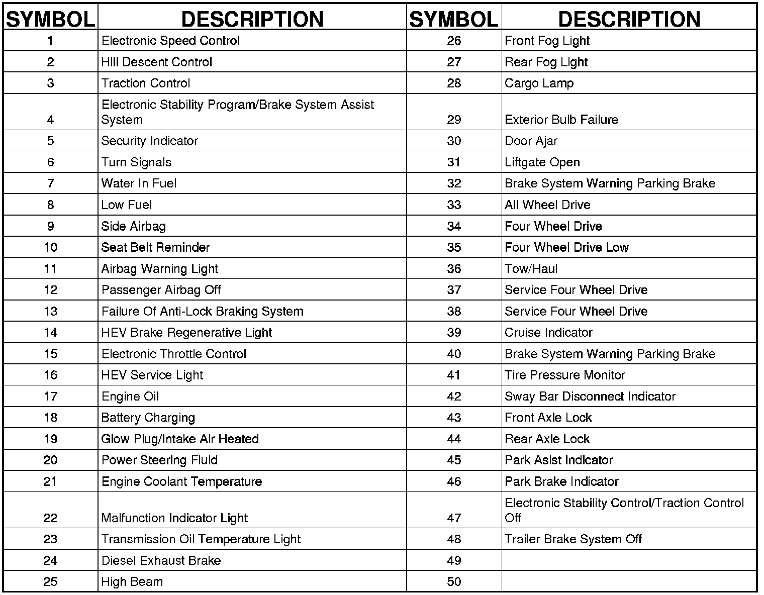 Chrysler LLC uses international symbols to identify various systems on the vehicle.