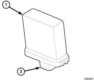 Vehicles equipped with the optional Adaptive Front Lighting System (AFLS) (which includes the features formerly known as the headlamp leveling system required in some export markets) are also equipped with an AFLS module (1). The AFLS module is located on a bracket at the right front corner of the Power Distribution Center (PDC) located in the right front corner of the engine compartment.