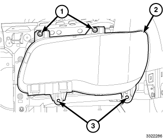 3. Install and tighten the four screws (1 and 3) that secure the two lower and the two upper mounting brackets integral to the lamp housing to the FEM. Tighten the screws securely.