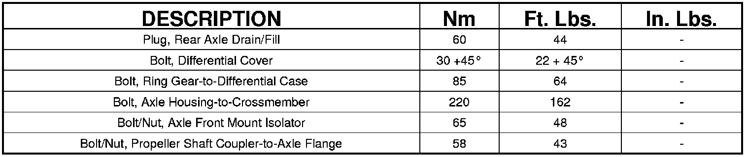 TORQUE SPECIFICATIONS
