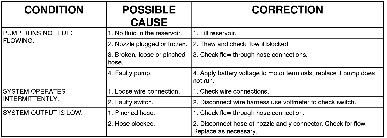 Whenever a windshield washer malfunction occurs, first verify that the windshield washer wire harness is properly connected to all connectors before starting normal diagnosis and repair procedures. Refer to the WINDSHIELD WASHER DIAGNOSIS table.