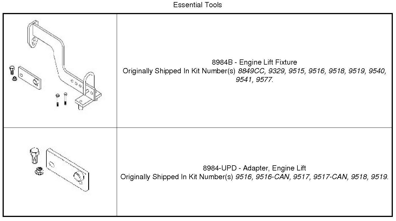 NOTE: Do not use air tools to install Engine Lift Fixture and Adapter (2,3).