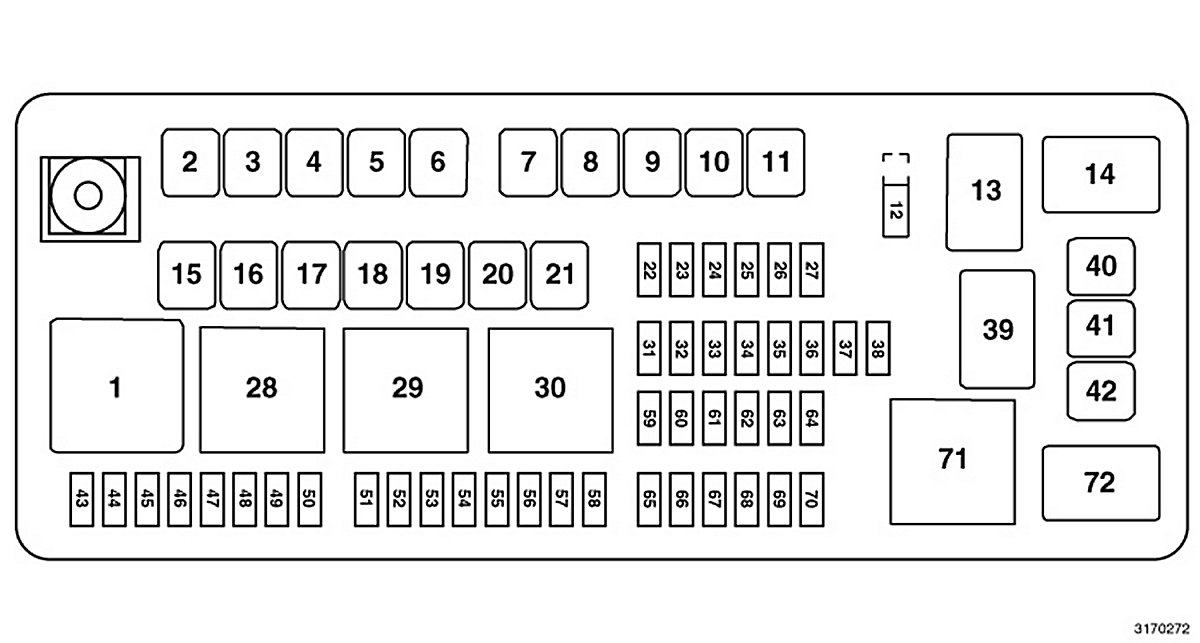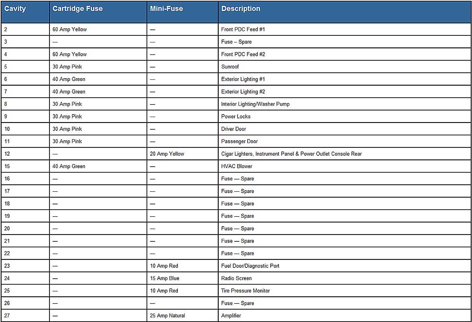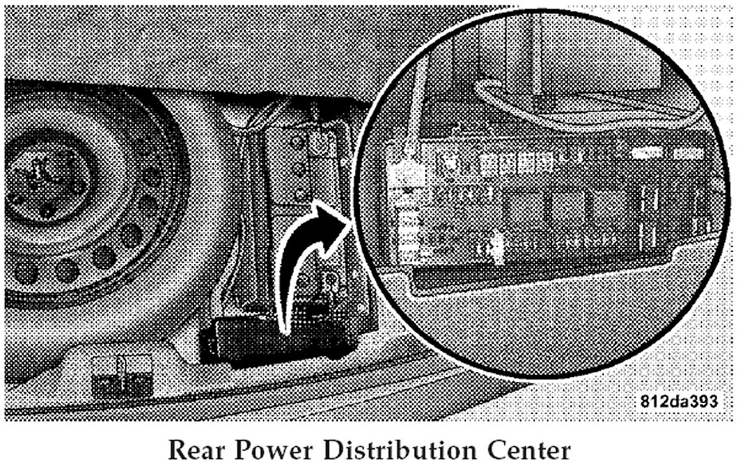 The rear power distribution center is located in the trunk under the spare tire access panel.