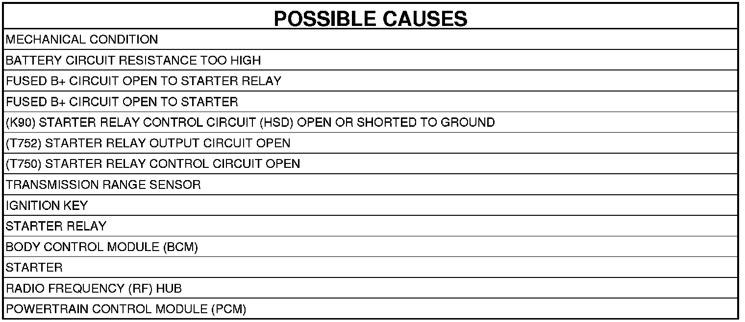- Repair the open in the (T750) Starter Control Output circuit.