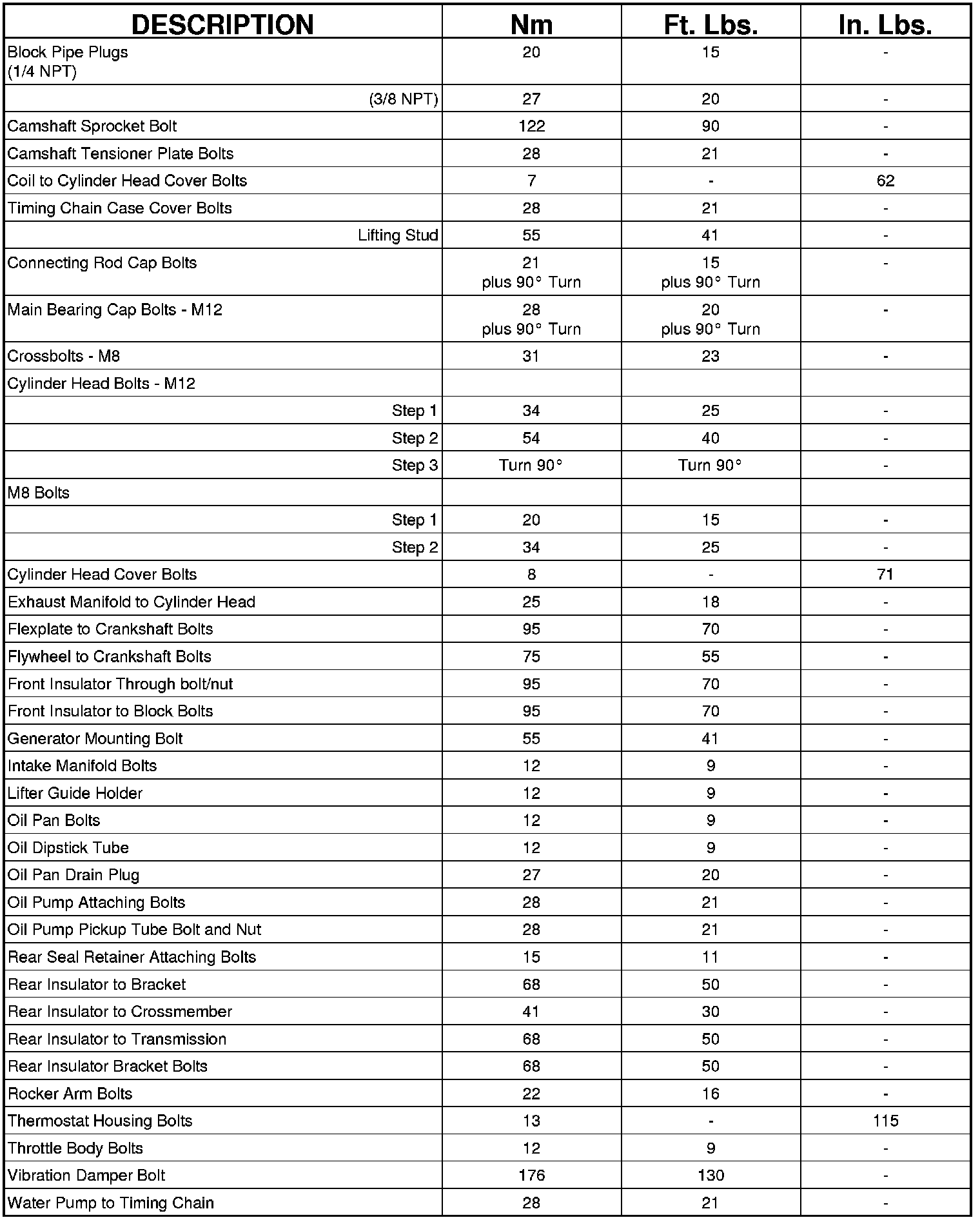 Engine Torque Specifications