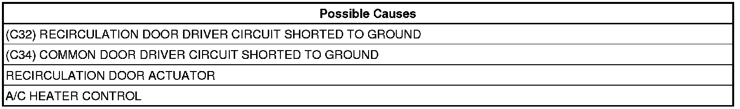 - Repair the (C32) Recirculation Door Driver circuit for a short to ground.