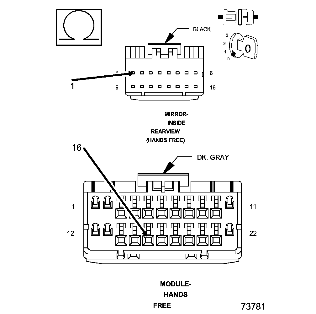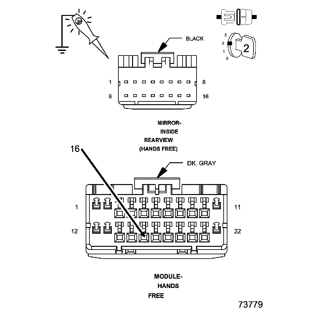 2. Measure the resistance of the (X712) Microphone 1IN (+) circuit between the HFM connector and the inside rearview mirror connector.