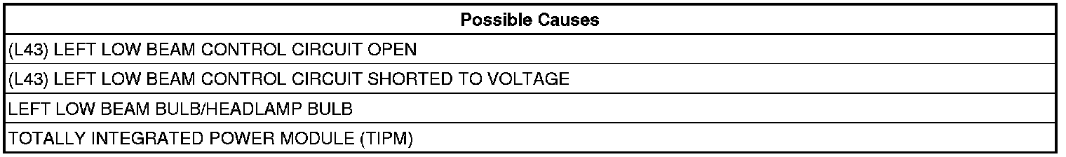 - Repair the (L43) Left Low Beam Control circuit for a short to voltage condition.