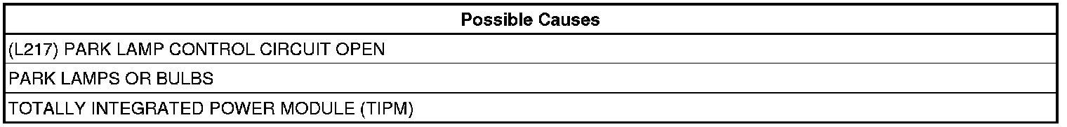 - Repair the (L217) Park Lamp Control circuit for an open condition.