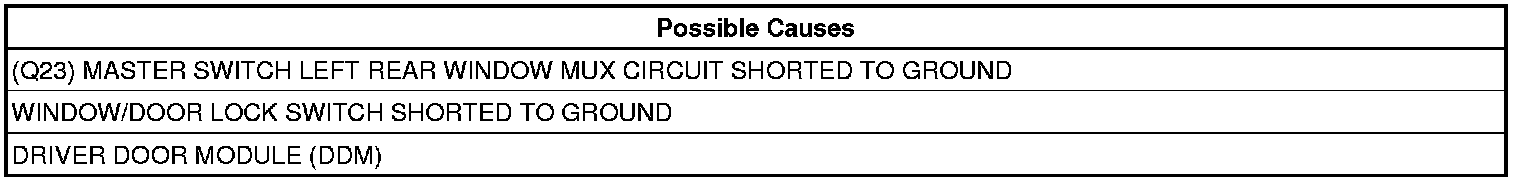 - Repair the (Q23) Master Switch Left Rear Window Mux circuit for a short to ground.
