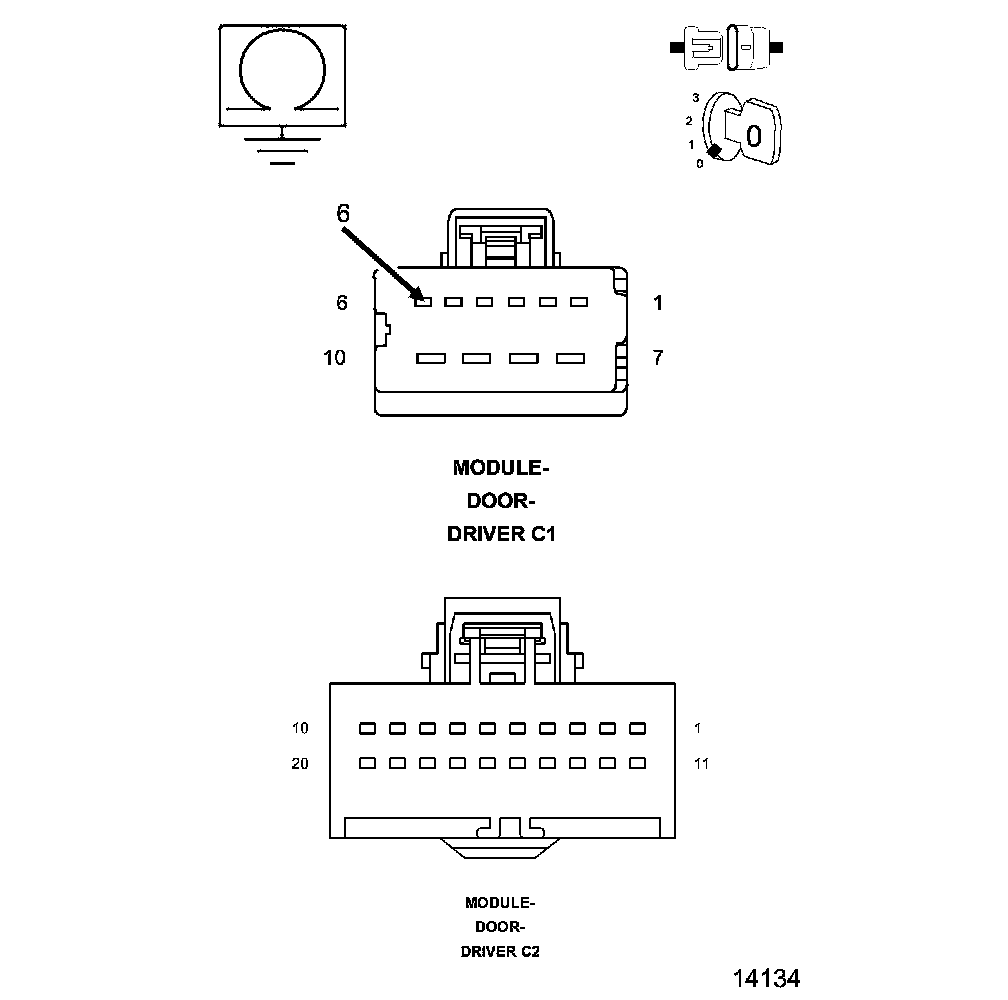 2. Disconnect the Driver Door Module C1 and C2 connectors.