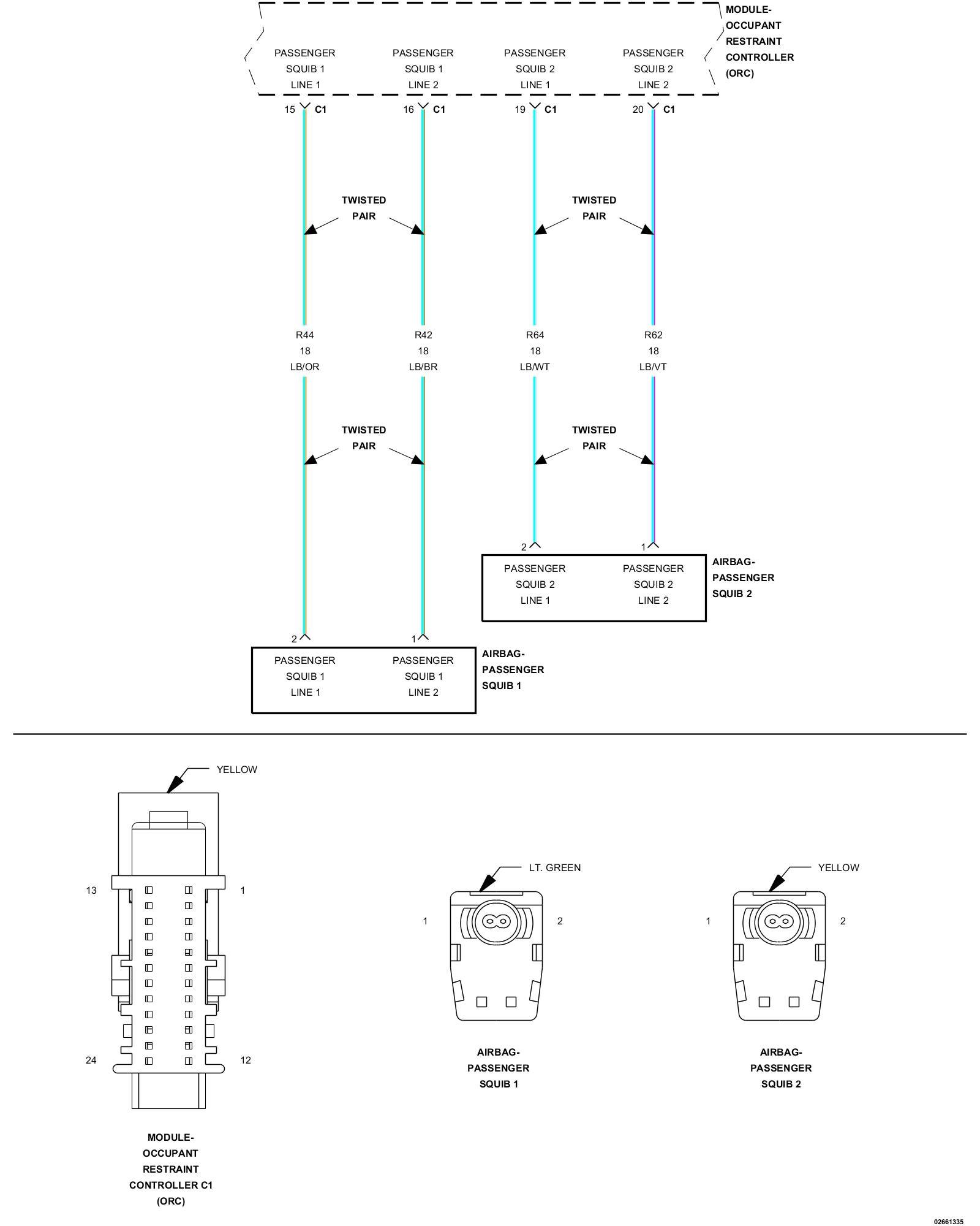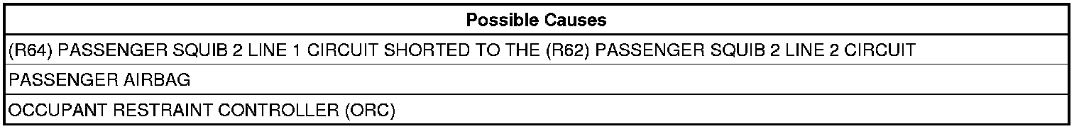 - Repair the (R64) Passenger Squib 2 Line 1 circuit for a short to the (R62) Passenger Squib 2 Line 2 circuit.