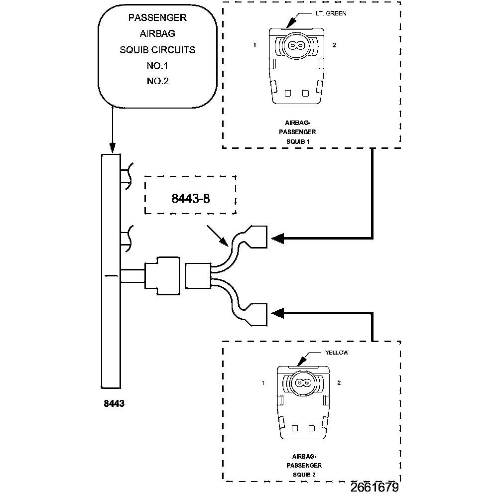 1. Disconnect the SRS Load Tool Kit (8443A) and Jumper from the Passenger Airbag Squib connectors.