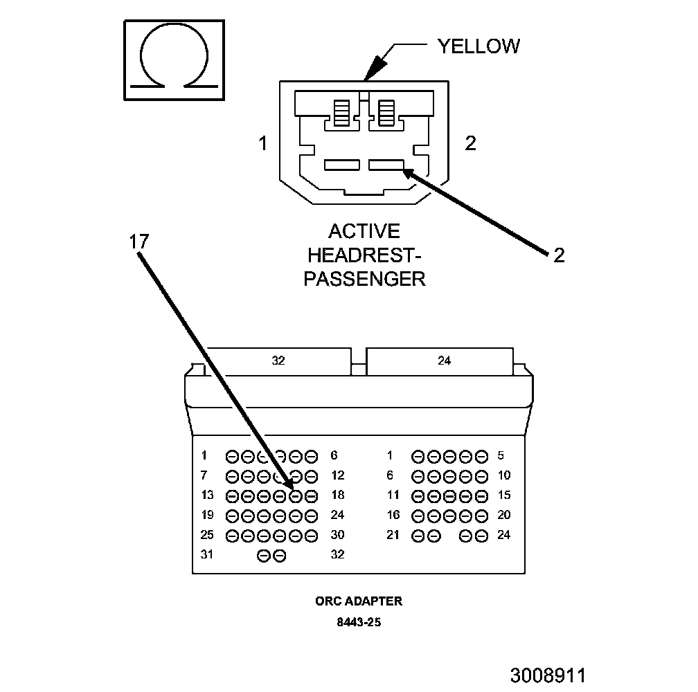 The Occupant Restraint Controller (ORC) continuously communicates with the Passenger Head Restraint over the Passenger Head Restraint Solenoid Signal circuits. The Passenger Head Restraint communication and on board diagnostics are powered by the ORC signal.