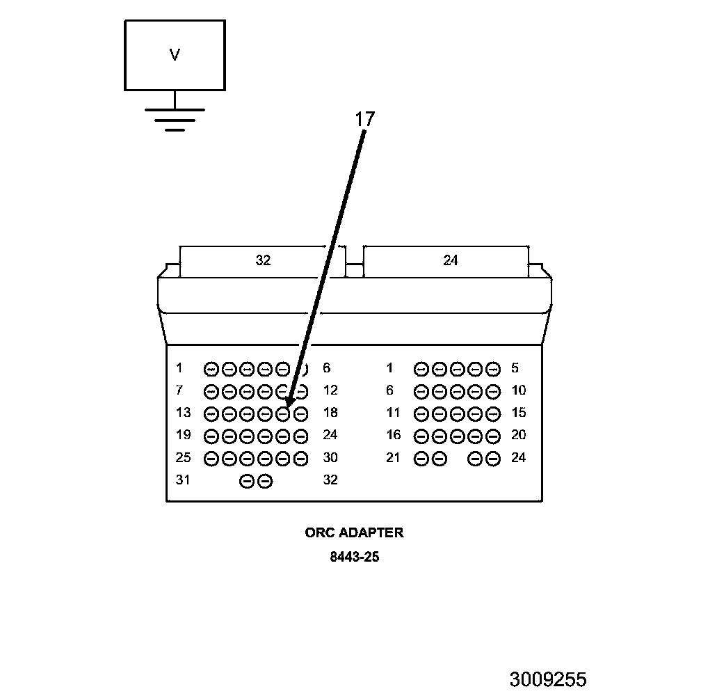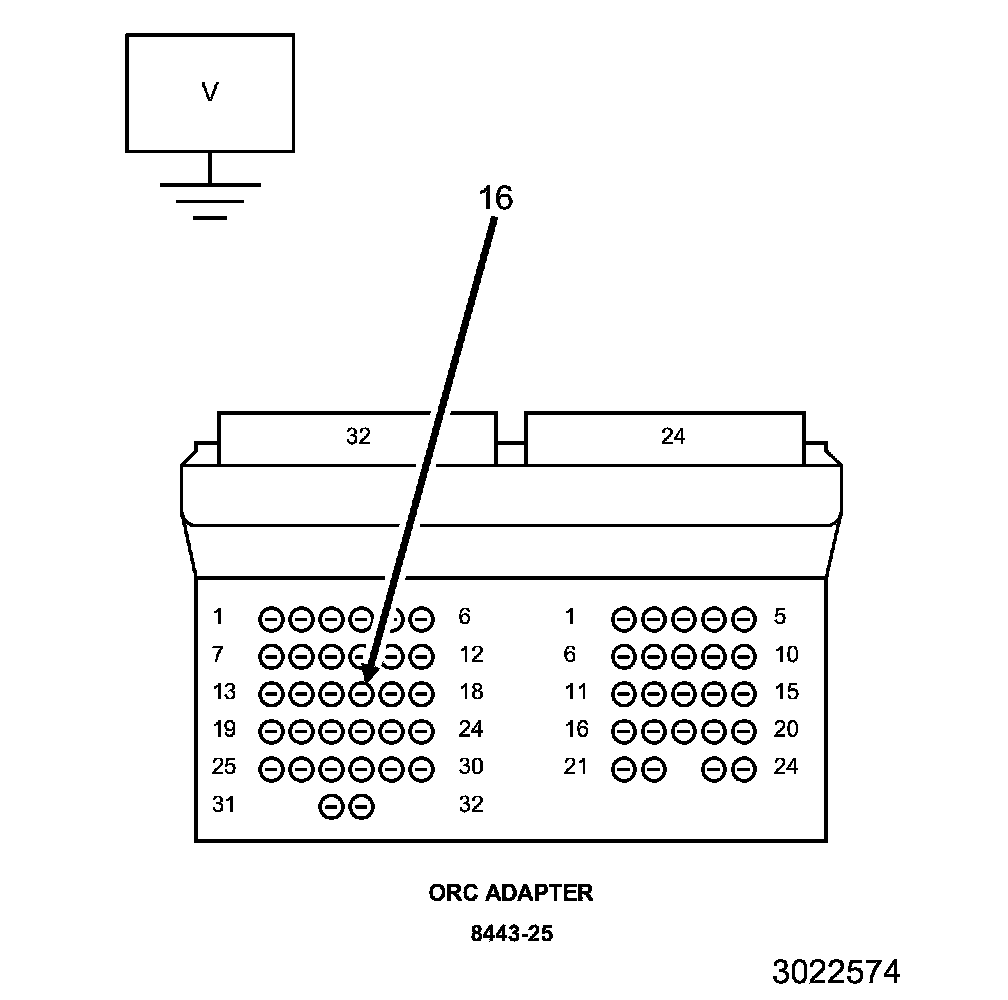 4. Measure the (R677) Passenger Head Restraint Solenoid Signal circuit voltage between the appropriate terminal of the SRS Load Tool Adapter (8443-25) connector and ground.