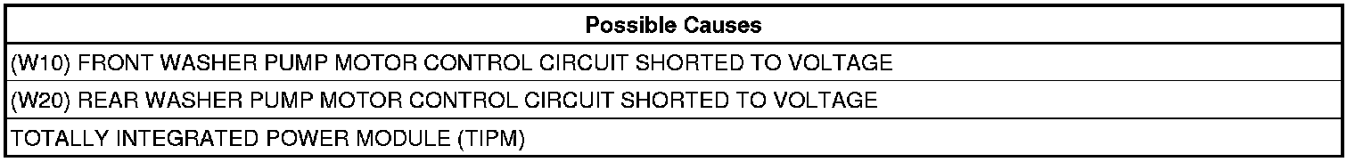 The Totally Integrated Power Module (TIPM) detects a high condition on the front and rear washer motor control circuits.