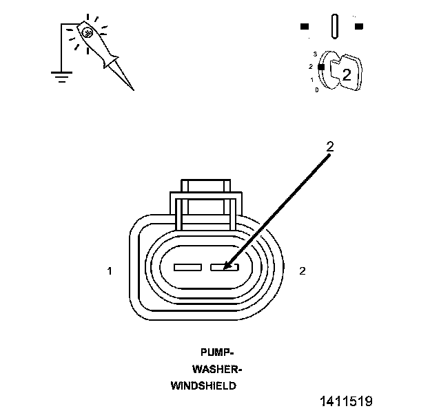5. Using a 12-volt test light connect to ground, probe the (W20) Rear Washer Pump Motor Control circuit in the Windshield Washer Pump harness connector.