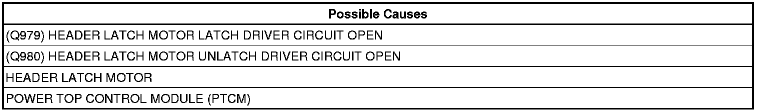 - Repair the (Q980) Header Latch Motor Unlatch Driver circuit for an open.