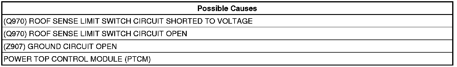 2. (Q970) ROOF SENSE LIMIT SWITCH SIGNAL SENSE CIRCUIT SHORTED TO VOLTAGE
