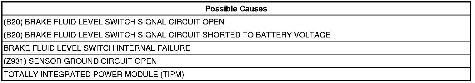 - Repair the open in the (B20) Brake Fluid Level Switch signal circuit.